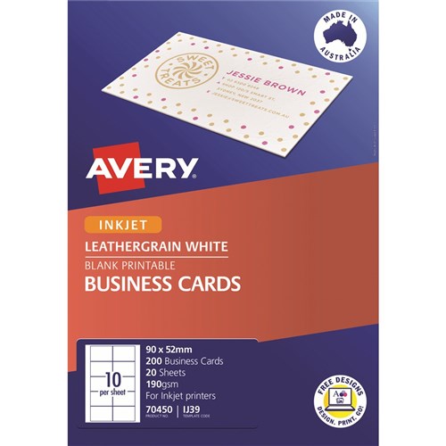 Avery Business Cards Laser Inkjet Labels Matte White LJ39 90x52mm 10UP 200 Cards