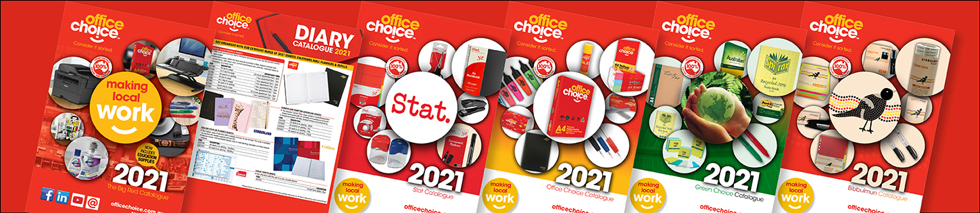 A comprehensive suite of printed and digital catalogues are available, including our annual Full Line Catalogue and Diary Catalogue. We also produce a range of speciality catalogues for non-core categories including Green Choice, Bibbulmun, Stat and our Office Choice range.