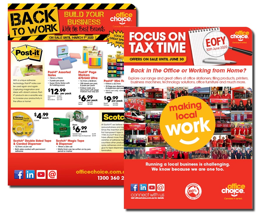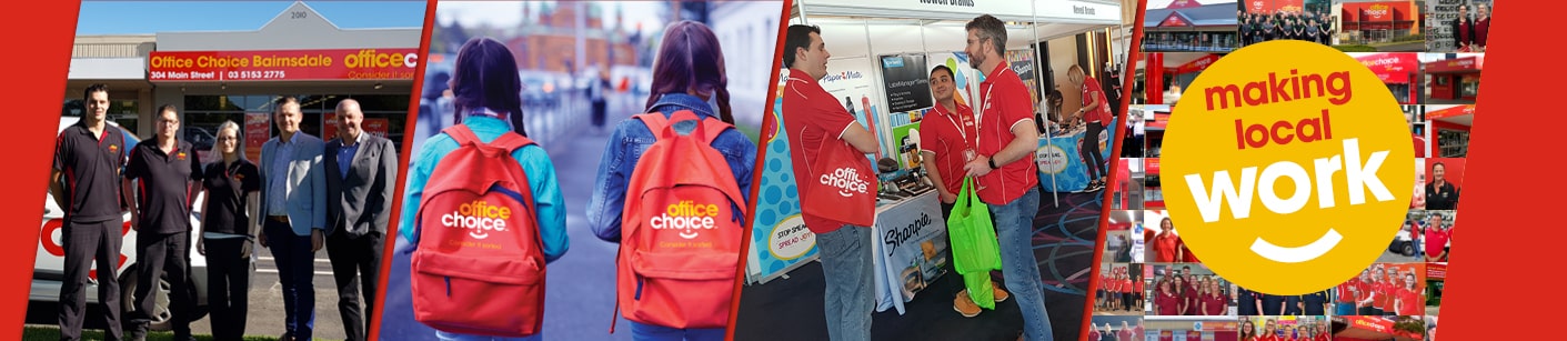 The Office Choice brand is backed by a unique value proposition and point of difference that resonates with current and prospective customers alike. Members enjoy the exclusive use of the brand, ensuring a high profile on a local and national level. Our current brand campaign "Making Local Work" encaptures our position within the local community and our aim to support our local customers to grow and prosper. We are part of the local community. We are here to help the local community. At Office Choice, we are Making Local Work.