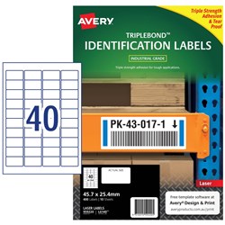 Avery TripleBond Laser Labels Identification White L6140 45.7x25.4mm 40UP 400 Labels