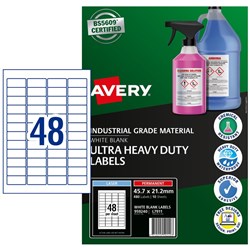 Avery Identification Removable Heavy Duty Laser White L4778 45.7x21.2mm 48UP 960 Labels