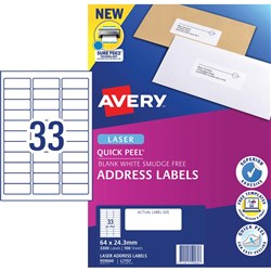 Avery Eco Friendly Labels Laser Printer White 64x33.8 mm 24UP 480 Labels
