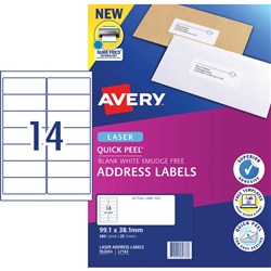 Avery Eco Friendly Labels Laser Printer White 99.1x38.1mm 14UP 280 Labels