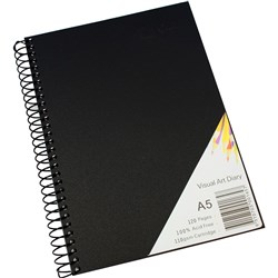 Quill Visual Art Diary A4 110gsm Cartridge 120 Pages Poly Cover Black