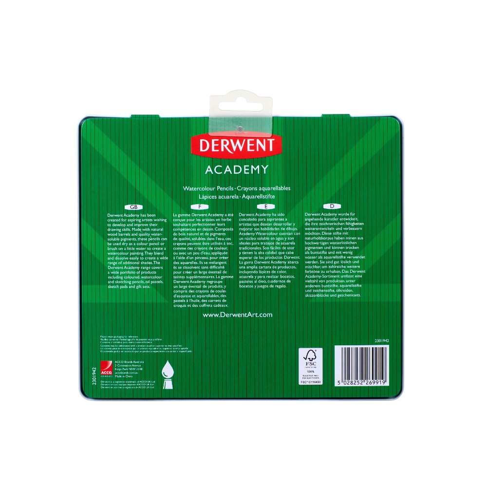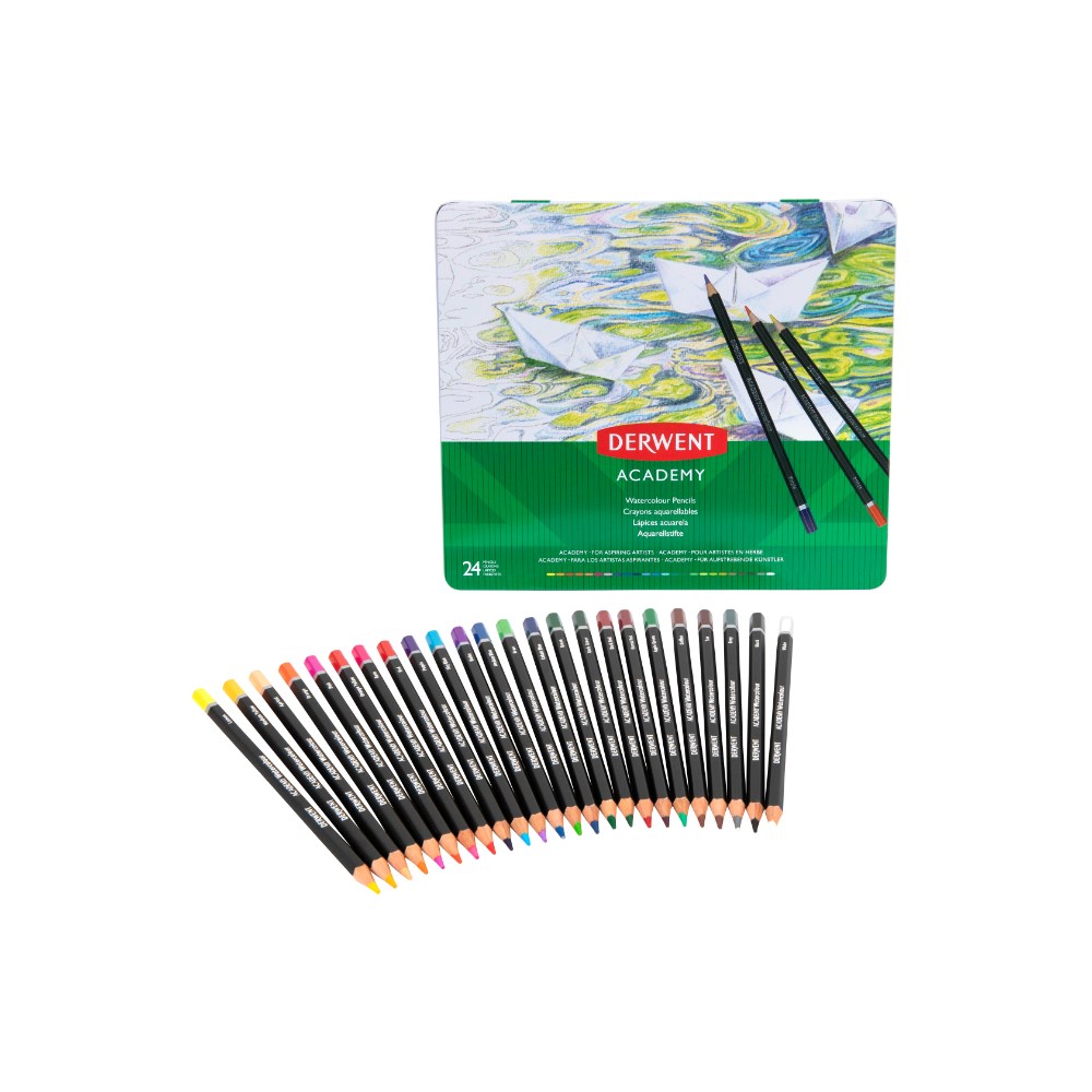 Derwent Academy Watercolour Pencils Assorted Tin Pack Of 24
