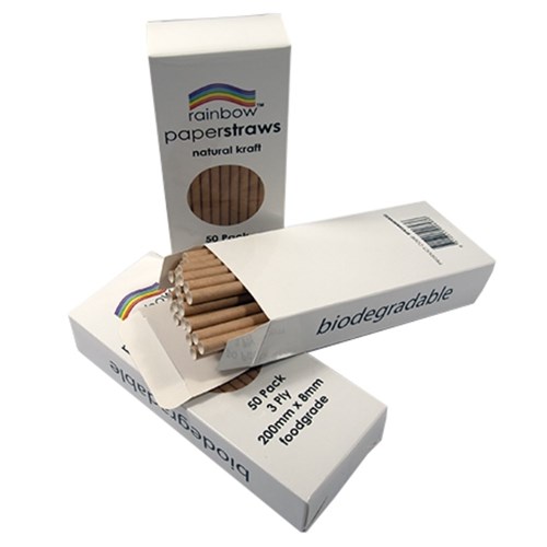 Rainbow 8mm Paper Straws Natural Pack Of 50