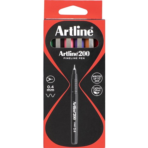 Artline 200 Fineliner Pen Fine 0.4mm 8 Assorted Colours Pack Of 12