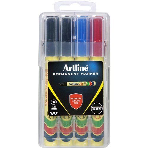 Artline 70 Permanent Markers Bullet 1.5mm Assorted Colours Hard Case Pack Of 4
