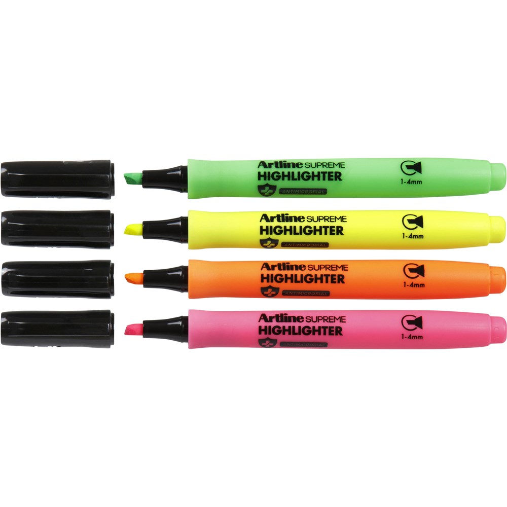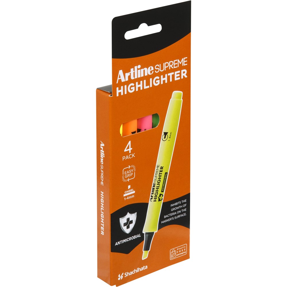 Artline Supreme Highlighters Chisel 2-5mm Assorted Colours Pack Of 4