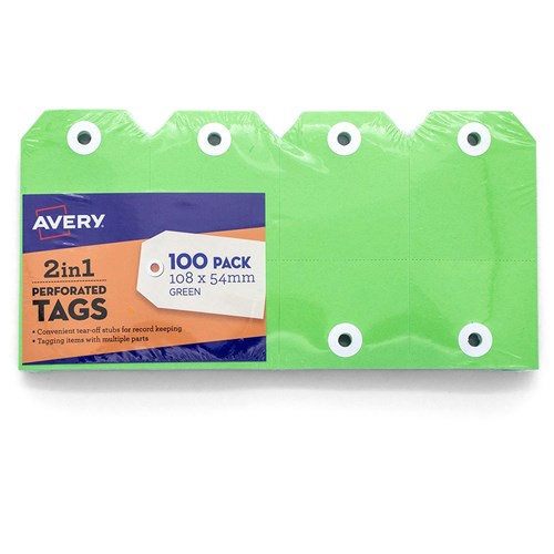 Avery 2 in 1 Perforated Tags 54 x 108mm Green Pack of 100