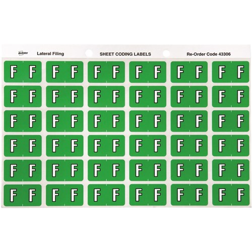 Avery Alphabet Coding Label F Side Tab 25x38mm Light Green Pack Of 180
