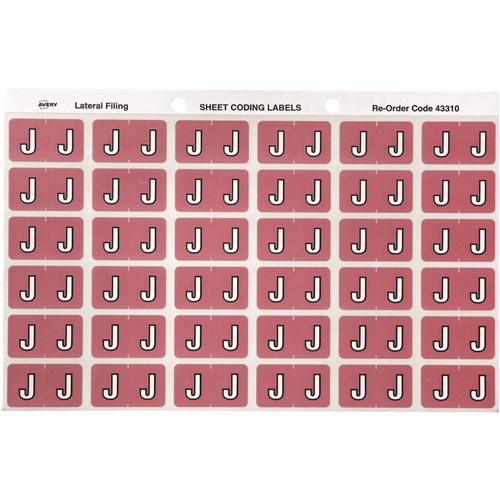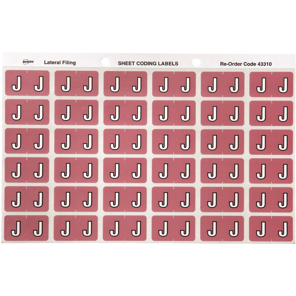 Avery Alphabet Coding Label J Side Tab 25x38mm Mauve Pack Of 180