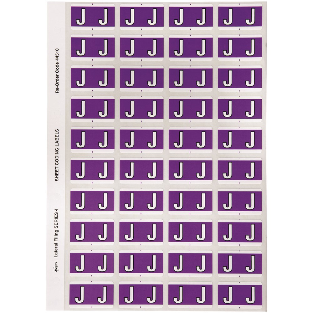 Avery Alphabet Coding Label J Side Tab 25x42mm Purple Pack Of 240