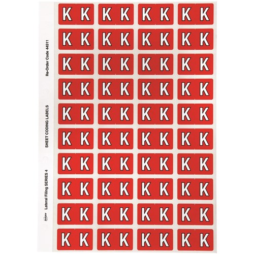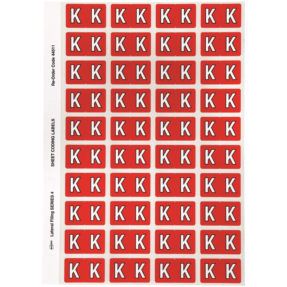 Avery Alphabet Coding Label K Side Tab 25x42mm Red Pack Of 240