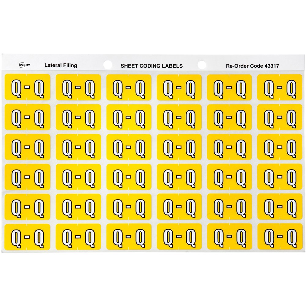 Avery Alphabet Coding Label Q Side Tab 25x38mm Yellow Pack Of 180