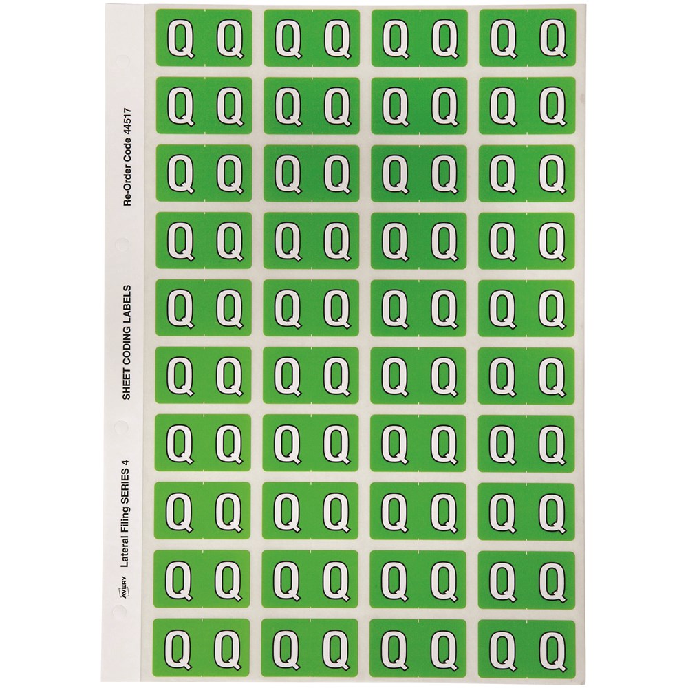 Avery Alphabet Coding Label Q Side Tab 25x42mm Light Green Pack Of 240