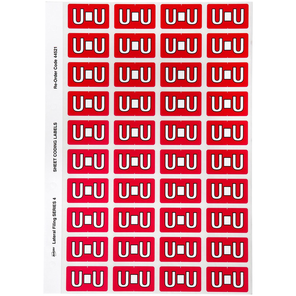 Avery Alphabet Coding Label U Side Tab 25x42mm Red Pack Of 240
