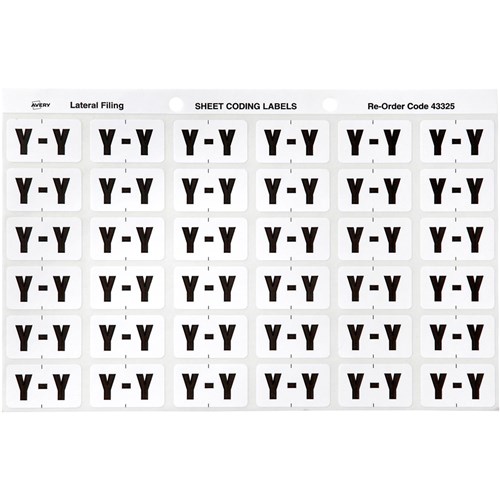 Avery Alphabet Coding Label Y Side Tab 25x38mm White Grey Pack Of 180