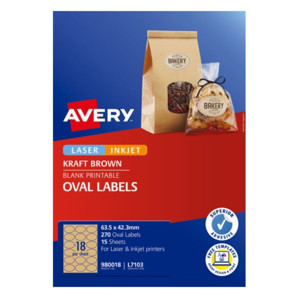 Avery Blank Printable Labels L7103 63.5 x 42.3mm Oval Kraft Brown 18UP 270 Labels 15 Sheet