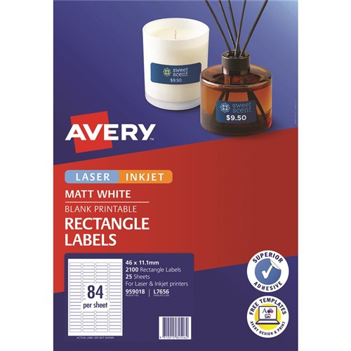 Avery Blank Printable Labels L7656 46 x 11.11mm Rectangle Matte White 84UP 2100 Labels