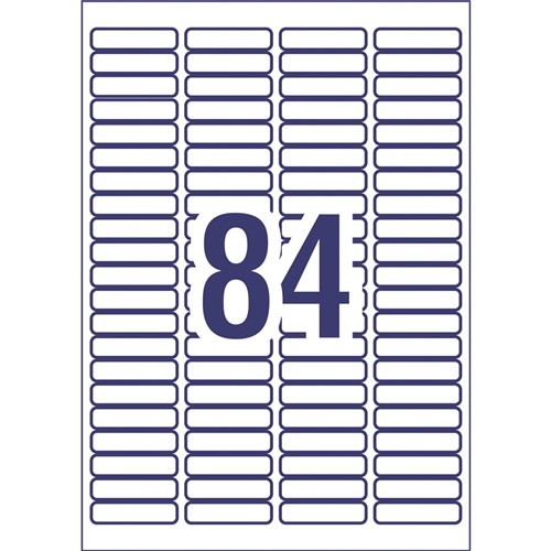 Size: 46 x 11.11mm 2100 labels, 25 sheets. 84 labels per sheet (84UP).