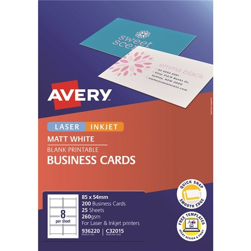Avery Business Cards Laser & Inkjet Labels Matte White C32011 10UP 250 Cards