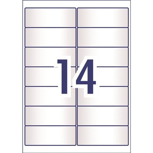 Size: 99.1x38.1mm 350 labels, 25 sheets. 14 labels per sheet (14UP).