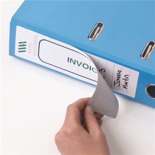 Specially designed labels to fit the spine of lever arch, ring binders, elasticated folders, box files, suspension files, document wallets and square cut folders.