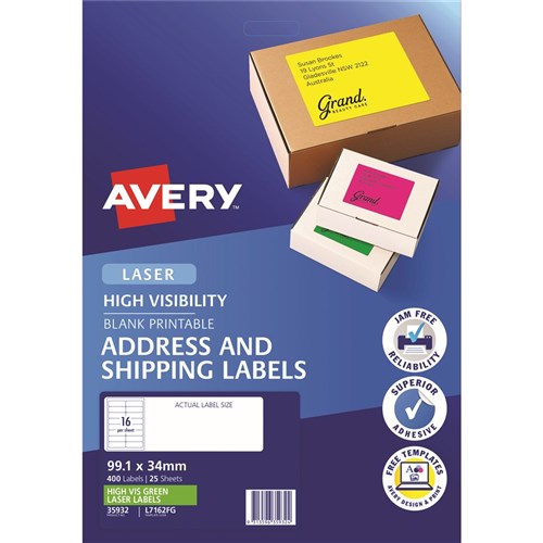 Avery High Visibility Shipping Laser Fluoro Green L7162FG 99.1x34mm 16UP 400 Labels