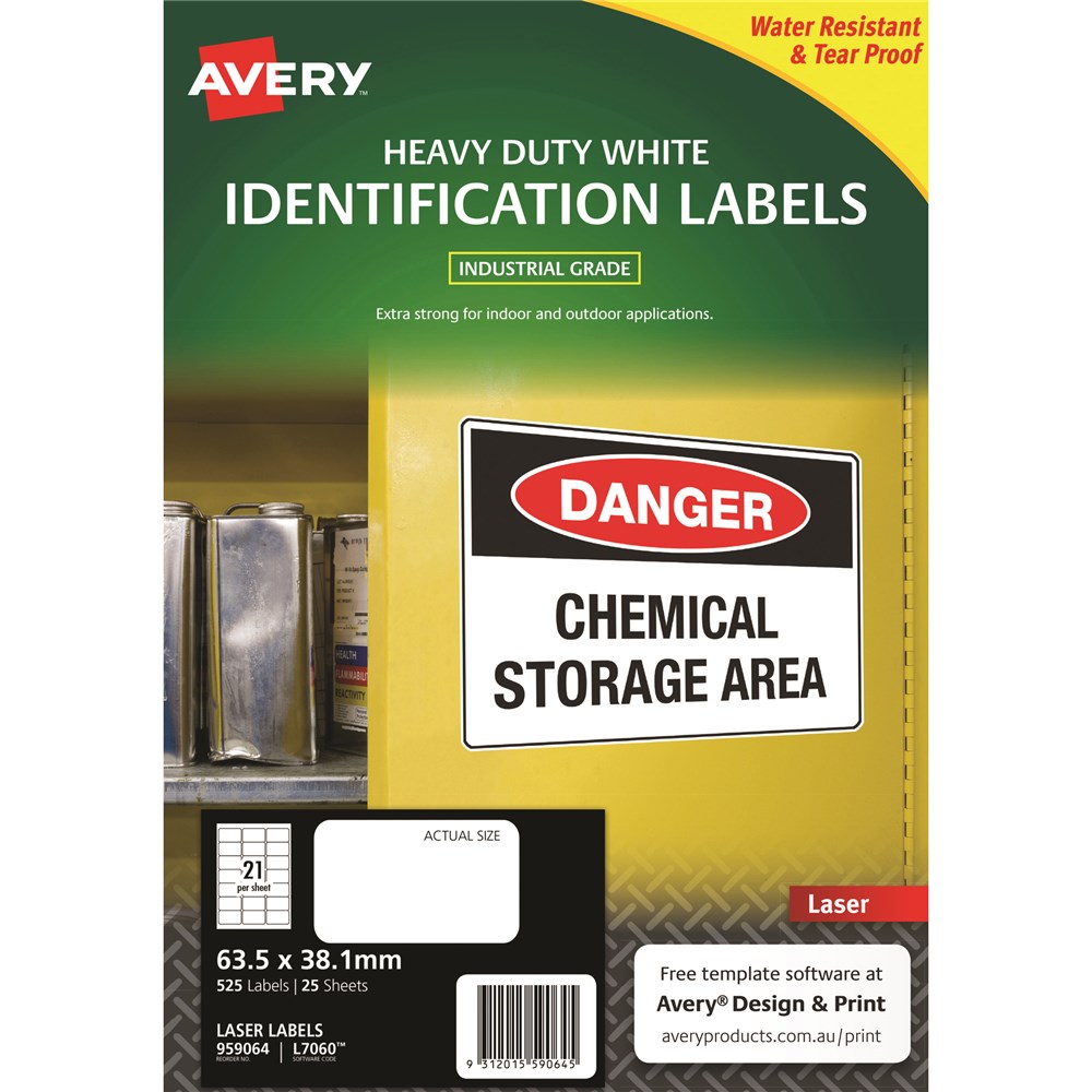 Avery Identification Laser Heavy Duty White L7060 63.5x38.1mm 21UP 25 Labels