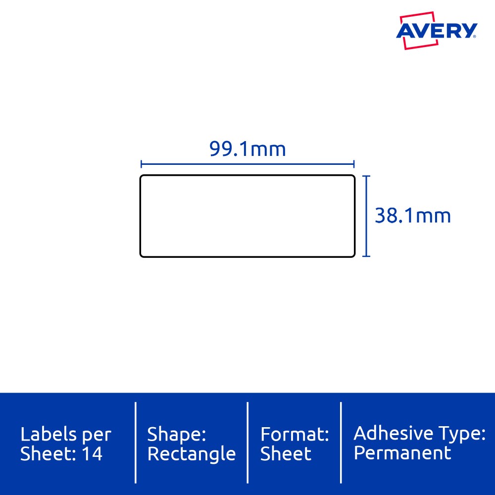 Size: 99.1x38.1mm 350 labels, 25 sheets. 14 labels per sheet (14UP).