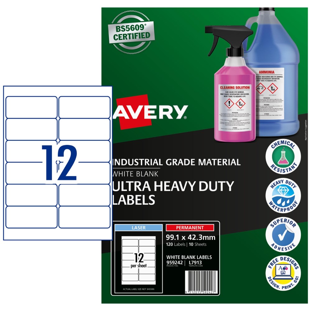 Avery Identification Laser Ultra Resistant White L7913 99.1x42.3mm 12UP 120 Labels