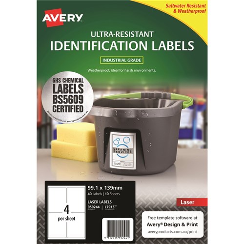 Avery Identification Laser Ultra Resistant White L7915 99.1x139mm 4UP 40 Labels