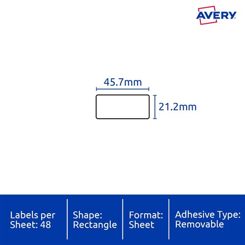 Size: 45.7x21.2mm 960 labels, 20 sheets. 48 labels per sheet (48UP).