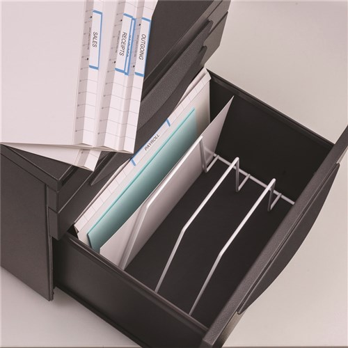 Suitable for upright filing in file cabinets, file cabinet drawers and shelving.