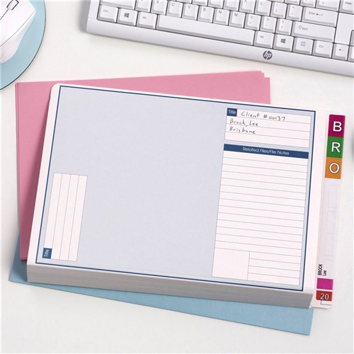 Feature printed panels on the covers to enable notes and related file information to be noted directly onto the file.
