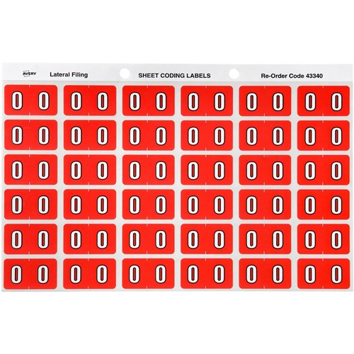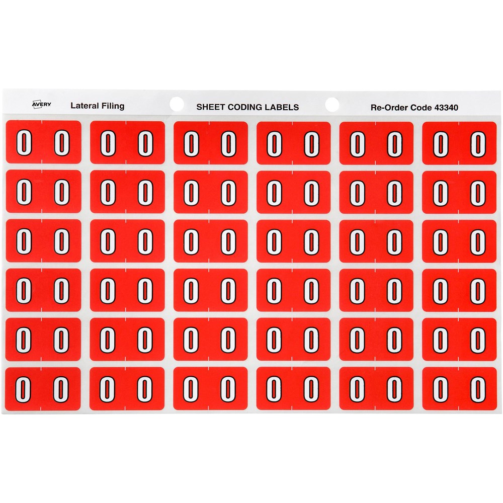Avery Numeric Coding Label 0 Side Tab 25x38mm Pink Pack Of 180