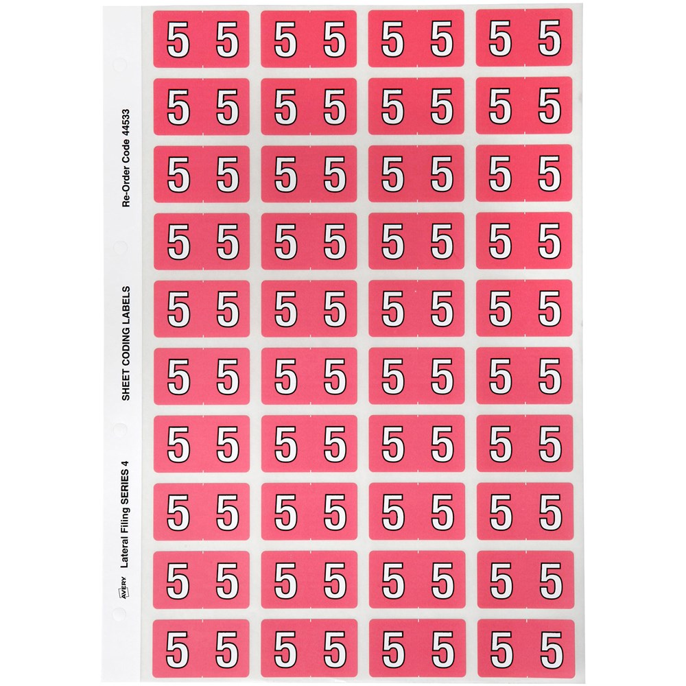 Avery Numeric Coding Label 5 Side Tab 25x42mm Pink Pack Of 240