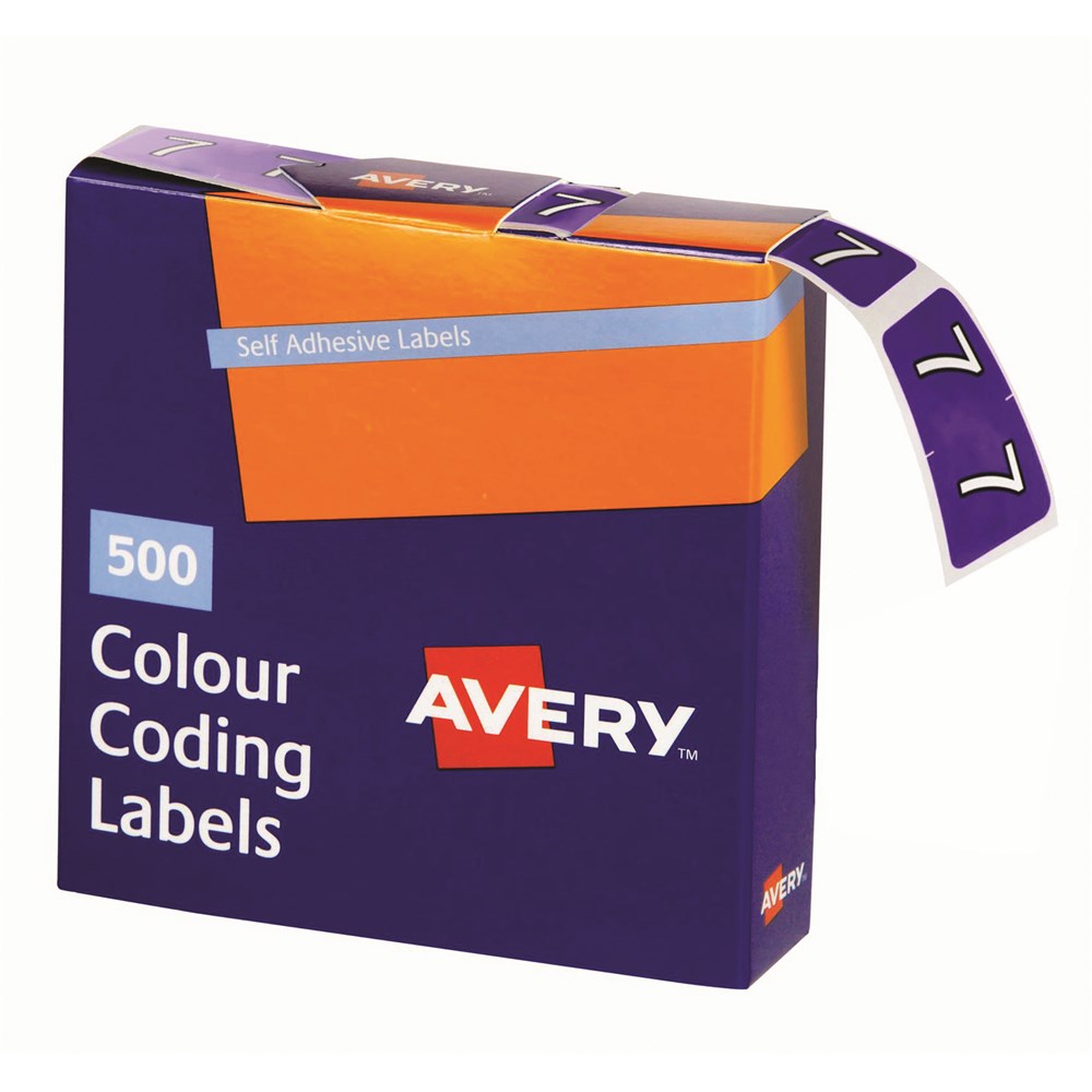 Avery Numeric Coding Label 7 Side Tab 25x38mm Purple Box Of 500