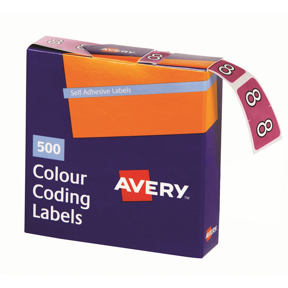 Avery Numeric Coding Label 8 Side Tab 25x38mm Mauve Box Of 500