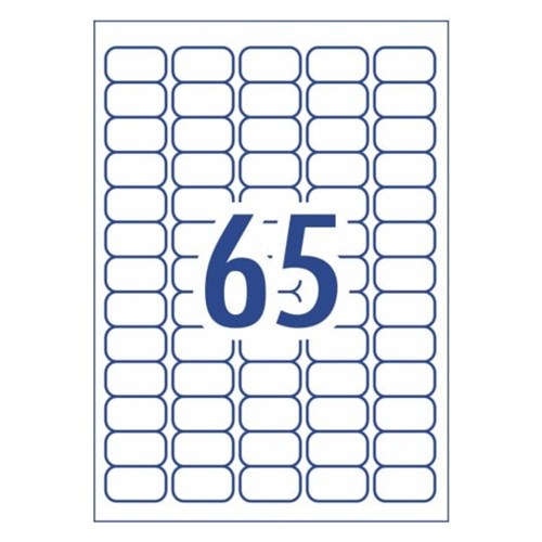 Size: 38.1x21.2mm 650 labels, 10 Sheets. 65 labels per sheet (65UP).