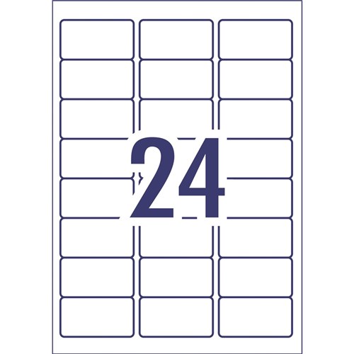 Size: 64x33.8mm 2400 labels, 100 sheets. 24 labels per sheet (24UP).
