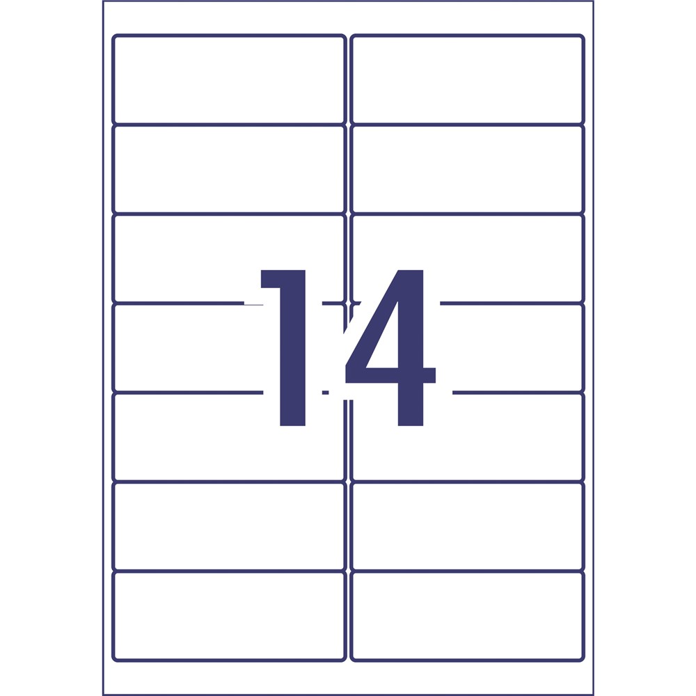 Size: 99.1x38.1mm 1400 labels, 100 sheets. 14 labels per sheet (14UP).