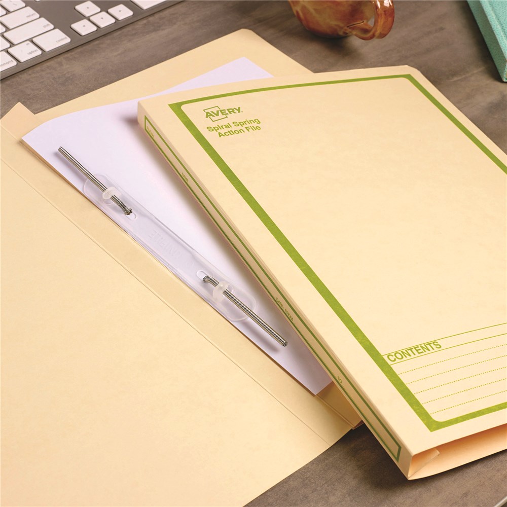 Heavy weight file fitted with spiral spring coil fastener and pressure plate