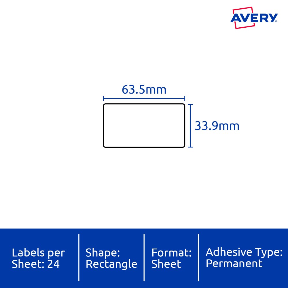 Size: 63.5x33.9mm 240 labels, 10 sheets. 24 labels per sheet (24UP).