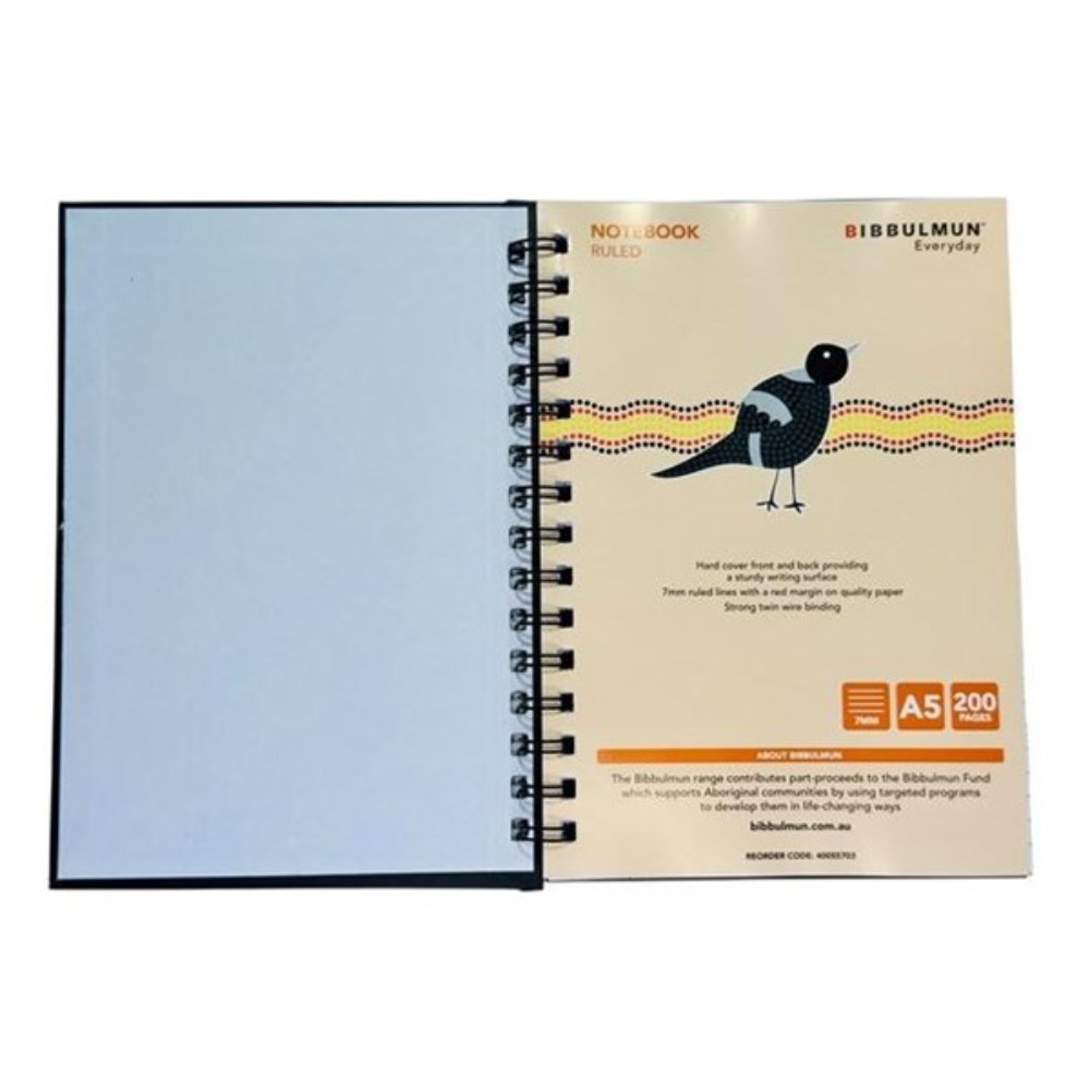 Bibbulmun Hardcover Notebook A5 Ruled 200 Page Black