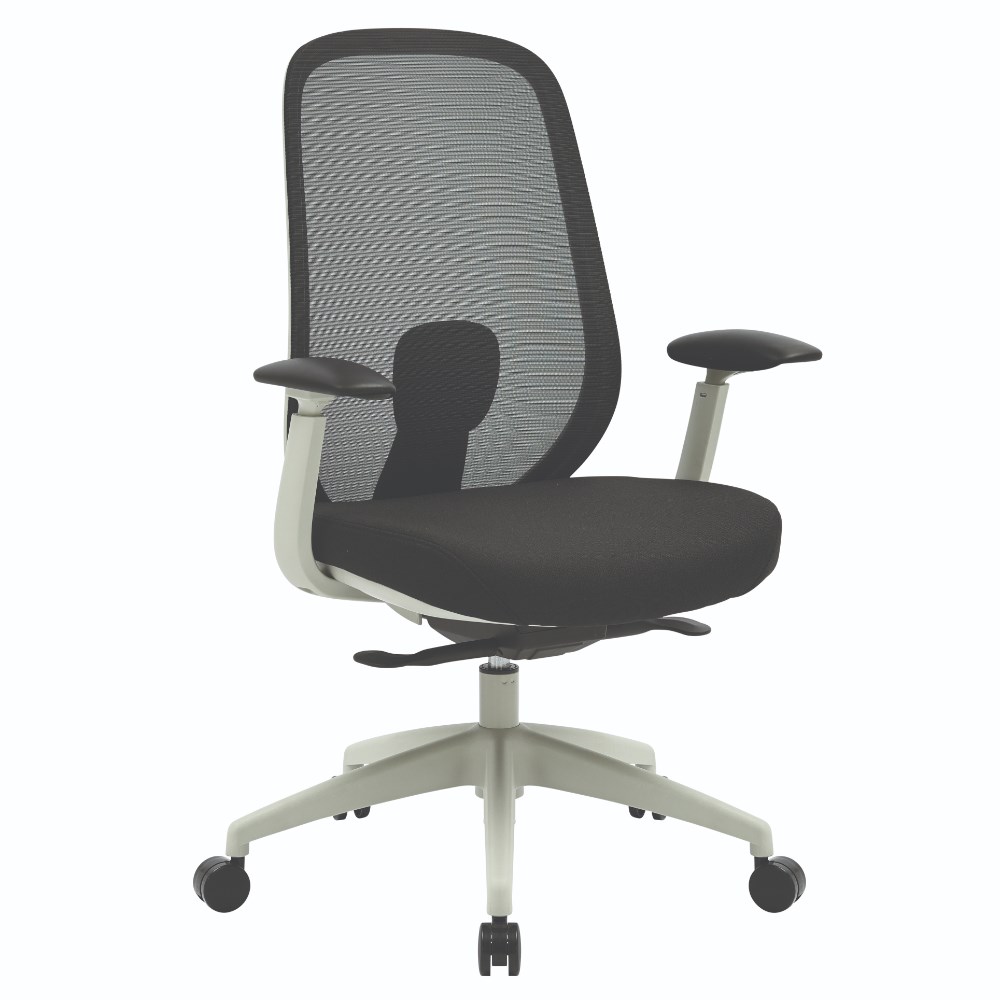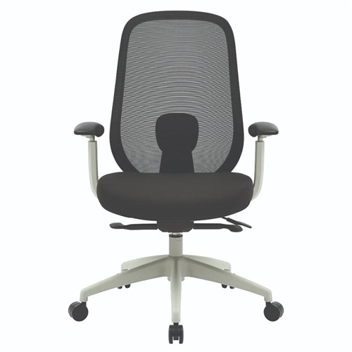 Buro Force High Back Office Chair + Arms Light Grey Frame Black Fabric Seat Mesh Back