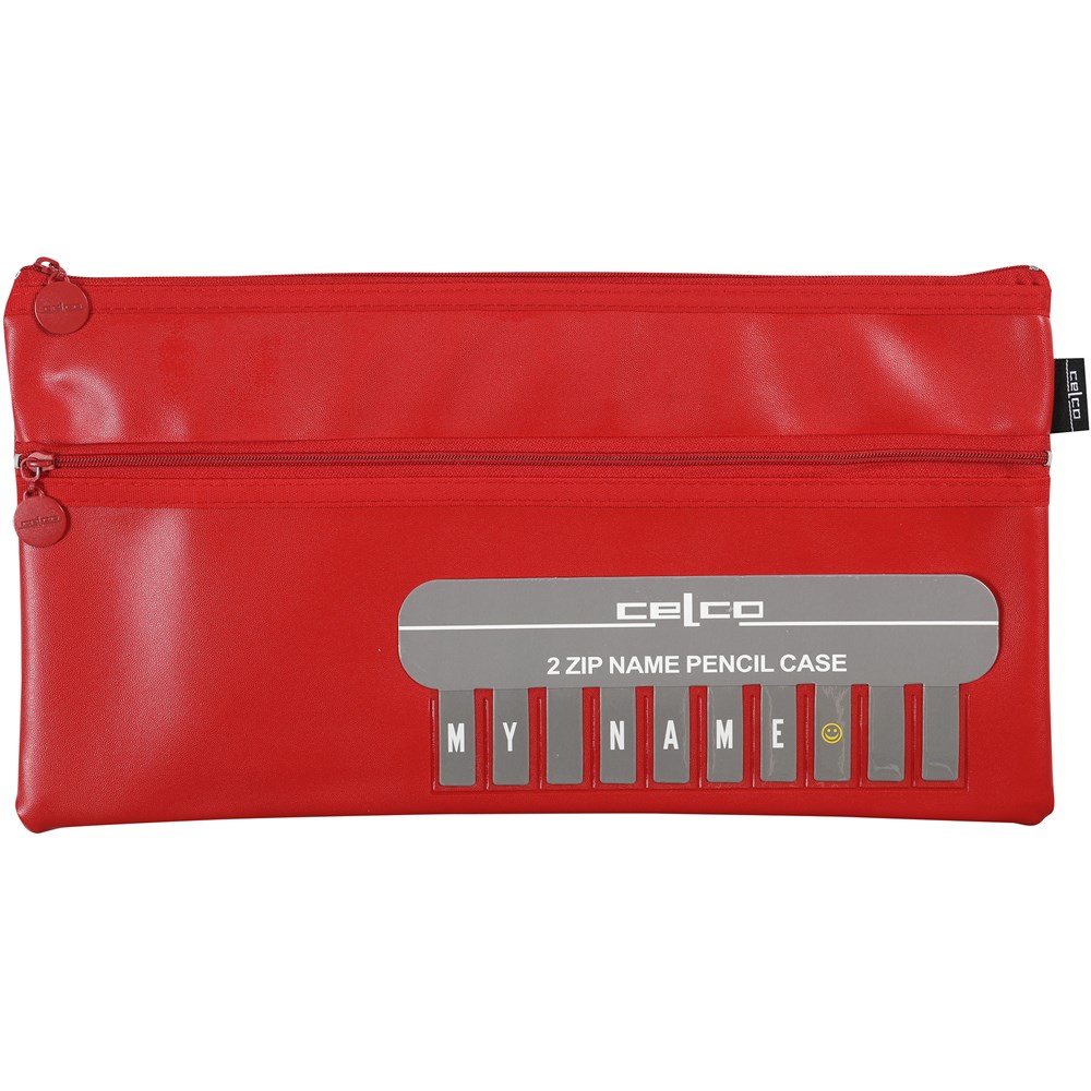 Celco Pencil Case Name Twin Zip Large 350 x 180mm Red
