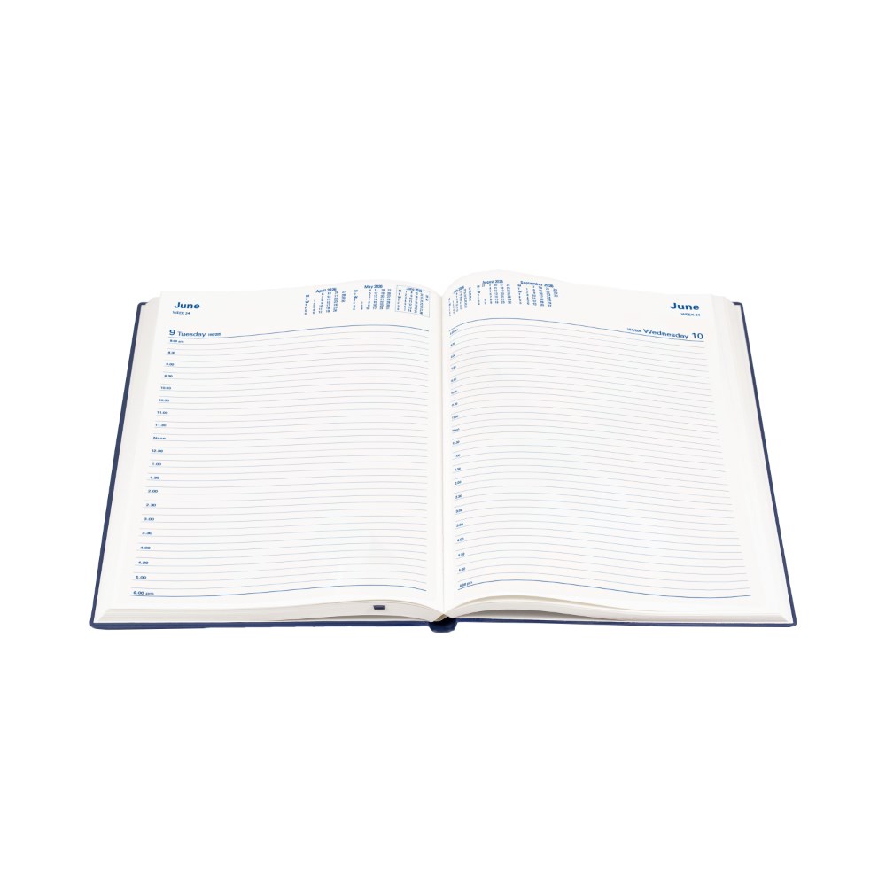 Bound in a highly durable, welded PVC padded cover. Printed on white paper, week numbers and Julian days.