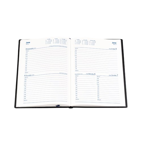 Bound in a highly durable, welded PVC padded cover. Printed on white paper, week numbers and Julian days.